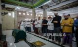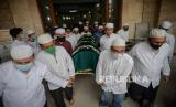 REPUBLIKA.CO.ID, JAKARTA -- Keluarga bersama kerabat memanjatkan doa untuk jenazah wartawan senior Republika Habib Alwi Saleh Shahab di Masjid Al-Ikhlas, Jalan Puncung, Condet, Jakarta Timur, Kamis (17/9).