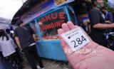 Nomor antrean calon pembeli Odading Mang Oleh di Bandung, Kamis (17/9). Lewat tengah hari 300 nomor antrean telah habis terbagi.   (FOTO : Yogi Ardhi/Republika)