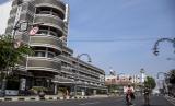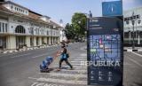 Warga beraktivitas saat penutupan Jalan Asia Afrika, Kota Bandung, Jumat (18/9). Bagi masyarakat yang bekerja di wilayah tersebut dapat menunjukkan identitas agar dapat masuk ke jalur tersebut. (FOTO : ABDAN SYAKURA/REPUBLIKA)