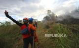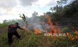 REPUBLIKA.CO.ID, BANJARBARU -- Petugas Badan Penanggulangan Bencana Daerah (BPBD) Kalimantan Selatan berupaya memadamkan api yang membakar semak belukar di Banjarbaru, Kalimantan Selatan, Jumat (18/9).