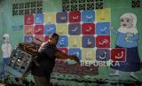 Warga melintas di dekat mural huruf Hijaiyah yang dilukis di tembok di kawasan Cilendek, Kota Bogor, Jawa Barat, Senin (21/9). Mural yang bertuliskan kaligrafi Islam, huruf hijaiyah dan tata cara pelaksanaan wudhu dan Shalat itu untuk memberikan edukasi pendidikan Islam serta memperindah estetika kota. Republika/Putra M. Akbar (FOTO : Republika/Putra M. Akbar)