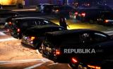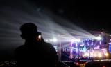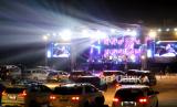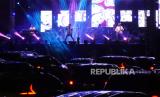 REPUBLIKA.CO.ID, SLEMAN -- Kendaraan berjejer menyaksikan konser dengan konsep drive-in di Sleman City Hall, Yogyakarta, Ahad (20/9) malam.