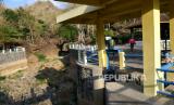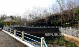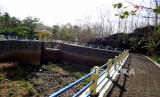 Embung mengering saat kemarau di Embung Selopamioro, Imogiri, Bantul, Yogyakarta, Senin (21/9). Memasuki kemarau beberapa embung atau penampungan air mengering. Beberapa embung diantaranya dimanfaatkan warga untuk pertanian. Dan bahkan saat penghujan dimanfaatkan untuk wisata air oleh warga. (FOTO : Wihdan Hidayat / Republika)