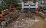 REPUBLIKA.CO.ID, JAKARTA -- Ribuan kubik sampah menumpuk di Pintu Air Manggarai, Jakarta Pusat, sejak Selasa (22/9) dini hari. UPK Badan Air Dinas Lingkungan Hidup DKI mulai membersihkannya sejak subuh agar aliran Kali Ciliwung tidak tersendat.