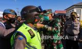 Danrem 011/Lilawangsa, Kolonel Inf Sumirating Baskoro (kedua kanan) memasang pita kepada Satgas COVID-19 Hunter di Mapolres Lhokseumawe, Aceh, Selasa (22/9/2020). Kepolisian jajaran Polda Aceh membentuk team Peu Croek COVID-19 Hunter yang akan bertugas memburu pelanggar protokol Kesehatan dan memberi respons cepat dalam mencegah penyebaran COVID-19 yang semakin meningkat di Aceh. (FOTO : Antara/Rahmad)
