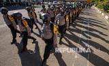Personel Polisi mengikuti apel peluncuran Satgas COVID-19 Hunter di Mapolres Lhokseumawe, Aceh, Selasa (22/9/2020). Kepolisian jajaran Polda Aceh membentuk team Peu Croek COVID-19 Hunter yang akan bertugas memburu pelanggar protokol Kesehatan dan memberi respons cepat dalam mencegah penyebaran COVID-19 yang semakin meningkat di Aceh. (FOTO : Antara/Rahmad)