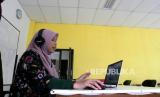 Dosen Pitri Ermawati mengisi kuliah daring sejarah fotografi di Jurusan Fotografi, Fakultas Seni Media Rekam, Institut Seni Indonesia, Yogyakarta, Rabu (23/9). Pada tahun ajaran baru 2020 di ISI sistem pembelajaran menggunakan perkuliahan secara daring untuk menghindari penyebaran Covid-19. Hal ini mengikuti anjuran Pemerintah tentang Bencana Nasional penyebaran virus corona. (FOTO : Wihdan Hidayat / Republika)