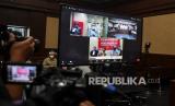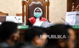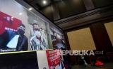 Hakim Ketua Susanti Arsi Wibawani mendengarkan pembacaan tuntutan oleh Jaksa Penuntut Umum (JPU) untuk Terdakwa kasus dugaan korupsi pengelolaan investasi saham dan reksa dana PT Asuransi Jiwasraya (AJS) Hendrisman Rahim saat menjalani sidang secara daring di Pengadilan Negeri Jakarta Pusat, Rabu (23/9/2020). Mantan Direktur Utama PT Asuransi Jiwasraya tersebut dituntut oleh JPU dengan 20 tahun penjara dan denda 1 miliar rupiah subsider 6 bulan penjara karena terbukti melakukan korupsi pengelolaan keuangan dan dana investasi PT Asuransi Jiwasraya. (FOTO : Antara/Muhammad Adimaja)