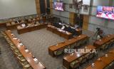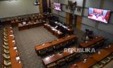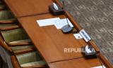 REPUBLIKA.CO.ID, JAKARTA -- Bangku Jaksa Agung ST Burhannuddin saat rapat kerja secara virtual di ruang rapat Komisi III DPR, Kompleks Parlemen Senayan, Jakarta, Kamis (24/9).