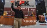 Kepala Biro Hubungan Masyarakat Febri Diansyah melambaikan tangan ke arah wartawan usai menyampaikan pengunduran dirinya sebagai pegawai dari lembaga anti korupsi tersebut di gedung KPK, Kamis (24/9/2020). Mantan Juru Bicara KPK tersebut mengundurkan diri sebagai Kepala Biro Humas sekaligus Pegawai KPK karena merasa kondisi politik dan hukum telah berubah tidak sesuai dengan semangat independensi sebagai lembaga pemberantas korupsi seperti awal dirinya menjadi bagian KPK. (FOTO : Antara/Muhammad Adimaja)