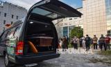 Mobil ambulans membawa jenazah almarhum dokter Jhon Andi Zainal yang meninggal akibat COVID-19, di RSUD Arifin Achmad, Kota Pekanbaru, Riau, Kamis (24/9/2020). Sudah tiga tenaga kesehatan di Riau yang terdiri dari dua dokter dan seorang perawat, wafat karena terpapar COVID-19 saat menjalankan tugas. (FOTO : Antara/FB Anggoro)
