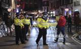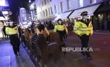 Anggota polisi berpatroli saat memantau pembatasan jam operasional di Soho, London, Inggris, Kamis (24/9). Pemerintah Inggris telah mengumumkan bahwa pub, bar, dan restoran harus tutup pukul 10 malam mulai Kamis (24/9). Pembatasan jam operasional itu diberlakukan untuk membantu mengurangi lonjakan kasus virus Corona di Inggris. EPA-EFE / ANDY RAINGaleri foto (FOTO : EPA-EFE/ANDRE PAIN )