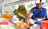 Warga saat menyantap makan siang gratis di Warung Sedekah dan Berbagi di Kalurahan Pengasih, Kulonprogo, Yogyakarta, Jumat (25/9). Sebanyak 70 porsi makan disiapkan oleh warung sedekah ini setiap hari kecuali hari Ahad. Warung yang didirikan sejak Agustus ini diinisiasi oleh Dosen Universitas Ahmad Dahlan (UAD) Abdul Ghofar. Mulai dari jam 10 pagi hingga jam tiga sore warga bisa makan dengan gratis tanpa ada syarat. Di samping itu, sekarang banyak juga warga yang ikut mengirimkan makanan untuk disedekahkan di sini. (FOTO : Wihdan Hidayat / Republika)