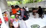 Warung Sedekah dan Berbagi di Kalurahan Pengasih, Kulonprogo, Yogyakarta, Jumat (25/9). Sebanyak 70 porsi makan disiapkan oleh warung sedekah ini setiap hari kecuali hari Ahad. Warung yang didirikan sejak Agustus ini diinisiasi oleh Dosen Universitas Ahmad Dahlan (UAD) Abdul Ghofar. Mulai dari jam 10 pagi hingga jam tiga sore warga bisa makan dengan gratis tanpa ada syarat. Di samping itu, sekarang banyak juga warga yang ikut mengirimkan makanan untuk disedekahkan di sini. (FOTO : Wihdan Hidayat / Republika)