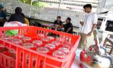 Relawan mengambilkan makan siang gratis di Warung Sedekah dan Berbagi di Kalurahan Pengasih, Kulonprogo, Yogyakarta, Jumat (25/9). Sebanyak 70 porsi makan disiapkan oleh warung sedekah ini setiap hari kecuali hari Ahad. Warung yang didirikan sejak Agustus ini diinisiasi oleh Dosen Universitas Ahmad Dahlan (UAD) Abdul Ghofar. Mulai dari jam 10 pagi hingga jam tiga sore warga bisa makan dengan gratis tanpa ada syarat. Di samping itu, sekarang banyak juga warga yang ikut mengirimkan makanan untuk disedekahkan di sini. (FOTO : Wihdan Hidayat / Republika)
