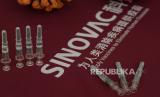 Vaksin untuk COVID-19 ditampilkan selama kunjungan ke pabrik vaksin SinoVac di Beijing, Kamis (24/9). SinoVac, salah satu perusahaan farmasi China yang memproduksi kandidat vaksin COVID-19. Perusahaan farmasi terkemuka tersebut mengatakan vaksinnya akan siap pada awal 2021 untuk distribusi di seluruh dunia termasuk AS AP Photo / Ng Han GuanGaleri Foto (FOTO : AP Photo / Ng Han Guan)