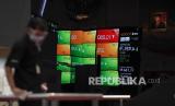 Petugas keamanan melintas di depan layar pergerakan Indeks Harga Saham Gabungan (IHSG) di Bursa Efek Indonesia, Jakarta, Jumat (25/9/2020). IHSG kembali bangkit setelah empat hari berturut-turut berada di zona merah dengan ditutup menguat 103,03 poin atau 2,13 persen ke posisi 4.945,79. (FOTO : Antara/Puspa Perwitasari)