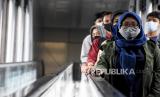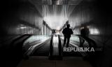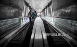 Calon penumpang melintasi eskalator Skybridge Stasiun Bandung, Kota Bandung, Ahad (27/9). Penambahan fasilitas skybridge yang membentang dari arah selatan menuju utara Stasiun Bandung tersebut bertujuan untuk menambah keamanan dan kenyamanan serta mempermudah calon penumpang untuk mengakses peron atau tempat pemberangkatan kereta. Foto: Abdan Syakura/Republika (FOTO : ABDAN SYAKURA/REPUBLIKA)