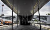 Petugas beraktivitas di dekat Skybridge Stasiun Bandung, Kota Bandung, Ahad (27/9). Penambahan fasilitas skybridge yang membentang dari arah selatan menuju utara Stasiun Bandung tersebut bertujuan untuk menambah keamanan dan kenyamanan serta mempermudah calon penumpang untuk mengakses peron atau tempat pemberangkatan kereta. Foto: Abdan Syakura/Republika (FOTO : ABDAN SYAKURA/REPUBLIKA)