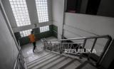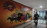 Petugas saat beraktivitas di Graha Wisata TMII, Jakarta, Selasa (29/9). Pemerintah Provinsi DKI Jakarta menetapkan Graha Wisata TMII sebagai tempat isolasi pasien tanpa gejala Covid 19 yang setiap kamarnya diisi oleh dua orang pasien dan tipe barak diisi enam pasien. Republika/Putra M. Akbar (FOTO : Republika/Putra M. Akbar)