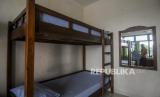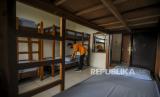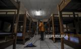 Petugas merapikan kamar yang dipersiapkan untuk tempat isolasi mandiri pasien Covid-19 di Graha Wisata TMII, Jakarta, Selasa (29/9). Pemerintah Provinsi DKI Jakarta menetapkan Graha Wisata TMII sebagai tempat isolasi pasien tanpa gejala Covid 19 yang setiap kamarnya diisi oleh dua orang pasien dan tipe barak diisi enam pasien. Republika/Putra M. Akbar (FOTO : Republika/Putra M. Akbar)