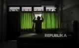 Petugas menutup pintu kamar yang dipersiapkan untuk tempat isolasi mandiri pasien Covid-19 di Graha Wisata TMII, Jakarta, Selasa (29/9). Pemerintah Provinsi DKI Jakarta menetapkan Graha Wisata TMII sebagai tempat isolasi pasien tanpa gejala Covid 19 yang setiap kamarnya diisi oleh dua orang pasien dan tipe barak diisi enam pasien. Republika/Putra M. Akbar (FOTO : Republika/Putra M. Akbar)