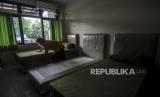 Petugas bersiap merapikan tempat isolasi mandiri pasien Covid-19 di Graha Wisata TMII, Jakarta, Selasa (29/9). Pemerintah Provinsi DKI Jakarta menetapkan Graha Wisata TMII sebagai tempat isolasi pasien tanpa gejala Covid 19 yang setiap kamarnya diisi oleh dua orang pasien dan tipe barak diisi enam pasien. Republika/Putra M. Akbar (FOTO : Republika/Putra M. Akbar)