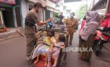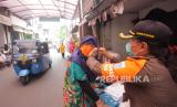 Petugas memberikan himbauan kepada warga untuk mengenakan masker di kawasan Jalan Menteng Atas, Jakarta, Selasa (29/9/2020). Razia gabungan tersebut untuk meningkatkan kesadaran masyarakat agar mematuhi protokol kesehatan di tengah meningkatnya angka konfirmasi positif COVID-19 di Jakarta. (FOTO : Antara/Reno Esnir)