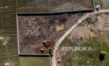 Petugas menggunakan alat berat saat akan menggarap lahan yang dijadikan lokasi pemakaman khusus Covid-19 di Rorotan, Jakarta, Rabu (30/9). Lokasi yang dulunya merupakan lahan pertanian itu akan dijadikan tempat pemakaman khusus Covid-19 dengan luas sebesar dua hektare dan diperkirakan dapat menampung sekitar 5.000 petak makam. Republika/Putra M. Akbar (FOTO : Republika/Putra M. Akbar)
