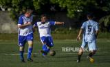 Sekda Kota Bandung Ema Sumarna (kedua kiri) berusaha melewati pemain dari tim DPRD Kota Bandung saat pertandingan sepak bola antar pimpinan di SOR Sepak Bola Lodaya, Jalan Lodaya, Kota Bandung, Kamis (1/10). Pertandingan tersebut bertujuan untuk mempererat silaturahmi, jaringan dan kekompakan antar instansi. Foto: Abdan Syakura/Republika (FOTO : ABDAN SYAKURA/REPUBLIKA)