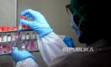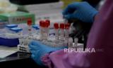 Petugas mengecek spesimen tes usap PCR di Labkesda Kota Depok, Cimanggis, Jawa Barat, Jumat (2/10). Dalam sehari Labkesda tersebut mampu menerima 250 spesimen tes usap PCR yang berasal dari puskesmas dan rumah sakit di wilayah Depok.Prayogi/Republika (FOTO : Prayogi/Republika)