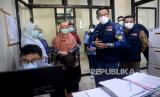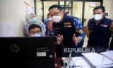 Gubernur Jawa Barat Ridwan Kamil saat meninjau fasilitas Labkesda Kota Depok, Cimanggis, Jawa Barat, Jumat (2/10). Dalam sehari Labkesda tersebut mampu menerima 250 spesimen tes usap PCR yang berasal dari puskesmas dan rumah sakit di wilayah Depok.Prayogi/Republika (FOTO : Prayogi/Republika)