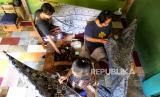 Perajin mengerjakan pesanan batik tulis di Taman Lumbini, Kasongan, Bantul, Yogyakarta, Jumat (2/10). Hari Batik Nasional pada 2 Oktober 2020 ini menjadi tantangan produsen batik. Resesi ekonomi menjadi rintangan serius, dengan indikasi turunnya daya beli masyarakat. Namun untuk batik tulis masih bertahan, karena memiliki pasar tersendiri di kalangan menengah atas. (FOTO : Wihdan Hidayat / Republika)