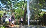 Warga menyaksikan semburan air dari sumur bor di Desa Manggarmas, Godong, Grobogan, Jawa Tengah, Minggu (13/9/2020). Semburan air yang bercampur pasir serta gas setinggi sekitar 30 meter yang berdekatan dengan lokasi Api Mrapen itu terjadi Sabtu (12/9/2020) malam akibat pengeboran sumur sedalam 35 meter. (FOTO : ANTARA/Yusuf Nugroho)