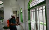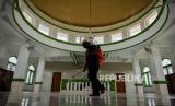 REPUBLIKA.CO.ID, JAKARTA -- Pengurus masjid melakukan penyemprotan cairan disinfektan di Masjid As-Saadah, Jalan Tegal Parang Utara I, Mampang Prapatan, Jakarta Selatan, Ahad (4/10). Kegiatan penyemprotan tersebut dilakukan tiap minggu dalam rangka kerja bakti menjaga kebersihan masjid serta sebagai antispasi penyebaran virus korona.