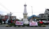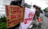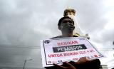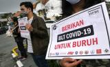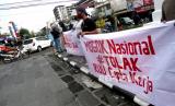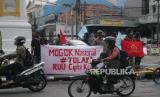 REPUBLIKA.CO.ID, YOGYAKARTA -- Peserta aksi dari Majelis Pekerja Buruh Indonesia (MPBI) menggelar aksi di Tugu Pal Putih, Yogyakarta, Senin (5/10).