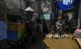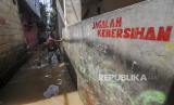 REPUBLIKA.CO.ID, JAKARTA -- Warga beraktivitas saat terjadi banjir di kawasan Kebon Pala, Jakarta, Senin (5/10).