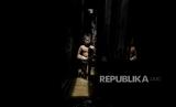 Warga beraktivitas saat terjadi banjir di kawasan Kebon Pala, Jakarta, Senin (5/10). Hujan deras di wilayah Jabodetabek pada Ahad (4/10) malam, membuat sebanyak 92 RT terendam banjir dengan rata-rata ketinggian mencapai 10-150 sentimeter. Republika/Putra M. Akbar (FOTO : Republika/Putra M. Akbar)