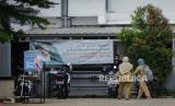 Petugas Puskesmas Kecamatan Cilandak usai pemeriksaan sejumlah mahasiswa di Institut Perguruan Tinggi Ilmu Alquran (PTIQ) di kawasan Cilandak, Jakarta Selatan, Senin (5/10). Sekitar 200 mahasiswa PTIQ terkonfirmasi positif Covid-19 hasil dari tracing melalui tes usap hingga saat ini masih dilakukan proses evakuasi sejumlah pasien menuju Wisma Atlet dan Tower Pademangan. Republika/Thoudy Badai (FOTO : Republika/Thoudy Badai)