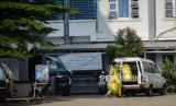 Petugas Puskesmas Kecamatan Cilandak membawa limbah medis usai pemeriksaan sejumlah mahasiswa di Institut Perguruan Tinggi Ilmu Alquran (PTIQ) di kawasan Cilandak, Jakarta Selatan, Senin (5/10). Sekitar 200 mahasiswa PTIQ terkonfirmasi positif Covid-19 hasil dari tracing melalui tes usap hingga saat ini masih dilakukan proses evakuasi sejumlah pasien menuju Wisma Atlet dan Tower Pademangan. Republika/Thoudy Badai (FOTO : Republika/Thoudy Badai)