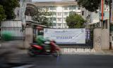 Suasan kampus Institut Perguruan Tinggi Ilmu Alquran (PTIQ) yang ditutup di kawasan Cilandak, Jakarta Selatan, Senin (5/10). Sekitar 200 mahasiswa PTIQ terkonfirmasi positif Covid-19 hasil dari tracing melalui tes usap hingga saat ini masih dilakukan proses evakuasi sejumlah pasien menuju Wisma Atlet dan Tower Pademangan. Republika/Thoudy Badai (FOTO : Republika/Thoudy Badai)