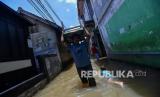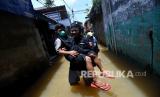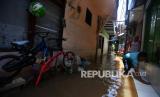 REPUBLIKA.CO.ID, JAKARTA -- Banjir melanda kawasan permukiman di Petogogan, Kebayoran Baru, Jakarta Selatan, Senin (5/10). Banjir tersebut terjadi akibat meluapnya Kali Krukut.
