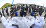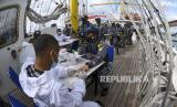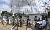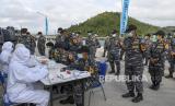 REPUBLIKA.CO.ID, LAMPUNG -- Sejumlah prajurit TNI AL awak KRI Bima Suci antre untuk melakukan tes diagnostik cepat atau rapid test di geladak saat sandar di Dermaga Pangkalan TNI AL (Lanal) Caligi, Pesawangan, Lampung, Selasa (6/10/2020).