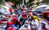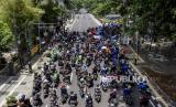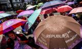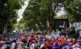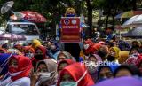 Sejumlah buruh dari berbagai serikat dan organisasi melakukan longmarch menuju Balai Kota Bandung di Jalan Merdeka, Kota Bandung, Selasa (6/10). Dalam unjuk rasa tersebut mereka menolak pengesahan UU Cipta Kerja dan mengancam akan melakukan mogok kerja pada 6-8 Oktober 2020. Foto: Abdan Syakura/Republika (FOTO : ABDAN SYAKURA/REPUBLIKA)