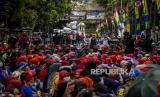 REPUBLIKA.CO.ID, BANDUNG -- Ribuan buruh dari berbagai serikat dan organisasi berunjuk rasa di depan Balai Kota Bandung, Jalan Wastukencana, Kota Bandung, Selasa (6/10).