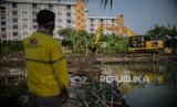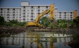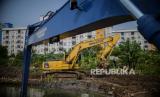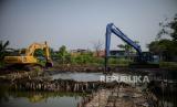 REPUBLIKA.CO.ID, Alat berat beroperasi di area proyek pembuatan embung atau penampungan air di kawasan Semanan, Jakarta Barat, Rabu (7/10). Pembangunan embung seluas 3.000 meter tersebut ditargetkan rampung pada akhir tahun 2020 sebagai antisipasi banjir di kawasan tersebut mengingat kawasan Semanan merupakan salah satu daerah rawan banjir.