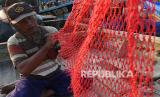 Nelayan memperbaiki jaring di Cilincing, Jakarta, Rabu (7/10/2020). Presiden menginstruksikan kepada intansi terkait untuk mendorong pemberian stimulus kepada nelayan dan petani dalam rangka meningkatkan perekonomian nasional. (FOTO : Antara/Wahyu Putro A)