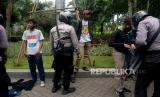 REPUBLIKA.CO.ID, JAKARTA -- Petugas kepolisian mengamankan sejumlah pelajar di Kawasan Senayan, Jakarta, Kamis (8/10).