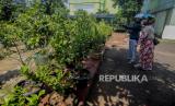 Petugas mendampingi warga yang akan mengambil bibit tanaman gratis di UPT Pusat Pengembangan Benih dan Proteksi Tanaman (P2BPT) Ragunan, Jakarta, Jumat (2/10). Pemerintah Provinsi DKI Jakarta mneyediakan 21 jenis bibit tanaman gratis yang dibagikan untuk warga DKI Jakarta sebagai upaya penghijauan saat masa PSBB. Republika/Putra M. Akbar (FOTO : Republika/Putra M. Akbar)