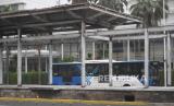 Akibat terbakarnya sejumlah halte saat aksi unjuk rasa menolak UU Cipta Kerja, bus transjakarta mengalihkan jalur untuk menurunkan penumpang di halte bus non-BRT.